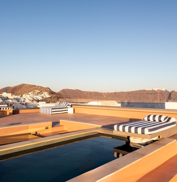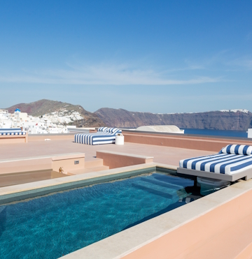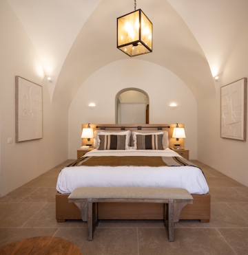 Traditional whitewashed walls, handcrafted details, and soaring arc ceilings celebrate Santorini’s rich maritime past,