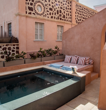 Villa Oro stands proudly as a designated “Cultural Heritage Building”, a rare and precious example of traditional Oia architecture. Ornate façades,